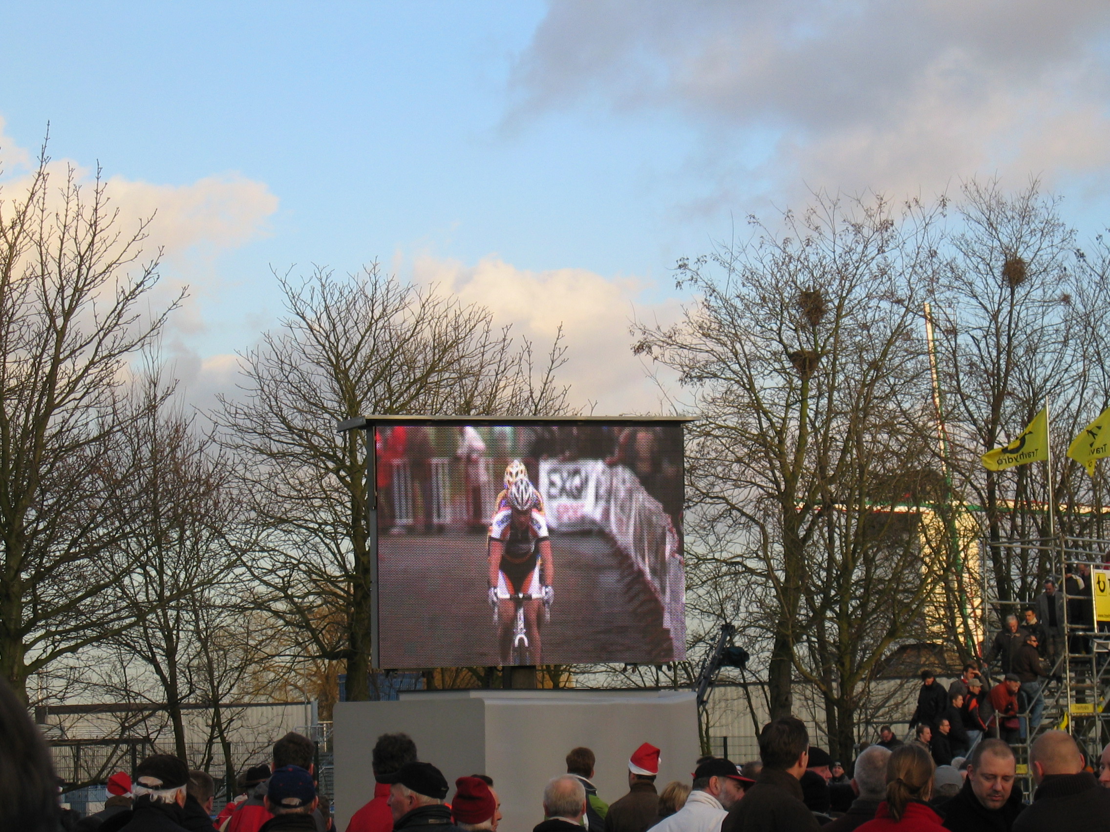 Image Posted by Vicki Thomas Posted on December 19, 2008 Posted in Scheldecross Race Comments Leave a comment img_1327 The big screen Size: 2272 × 1704 Post a comment or leave a trackback: Trackback URL.
